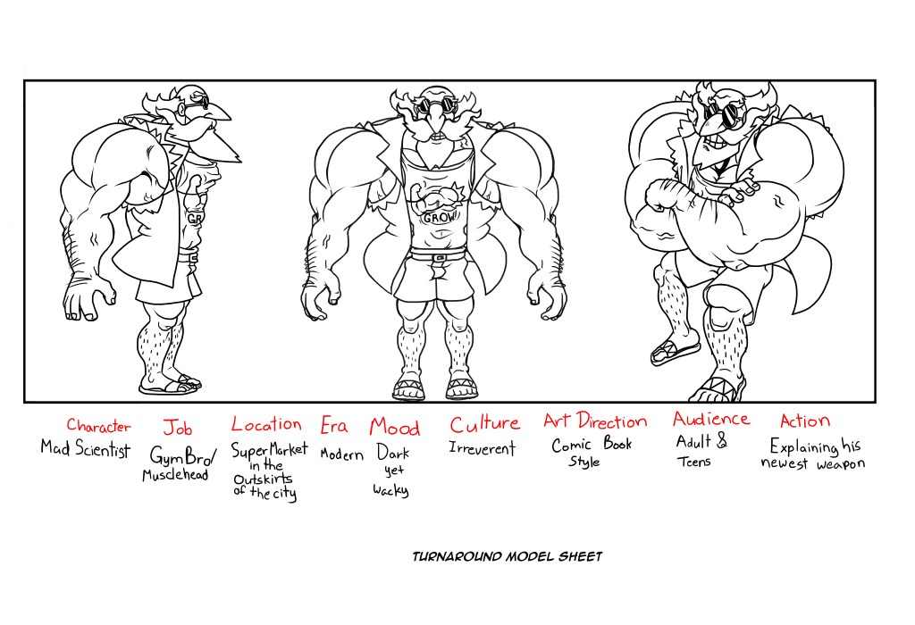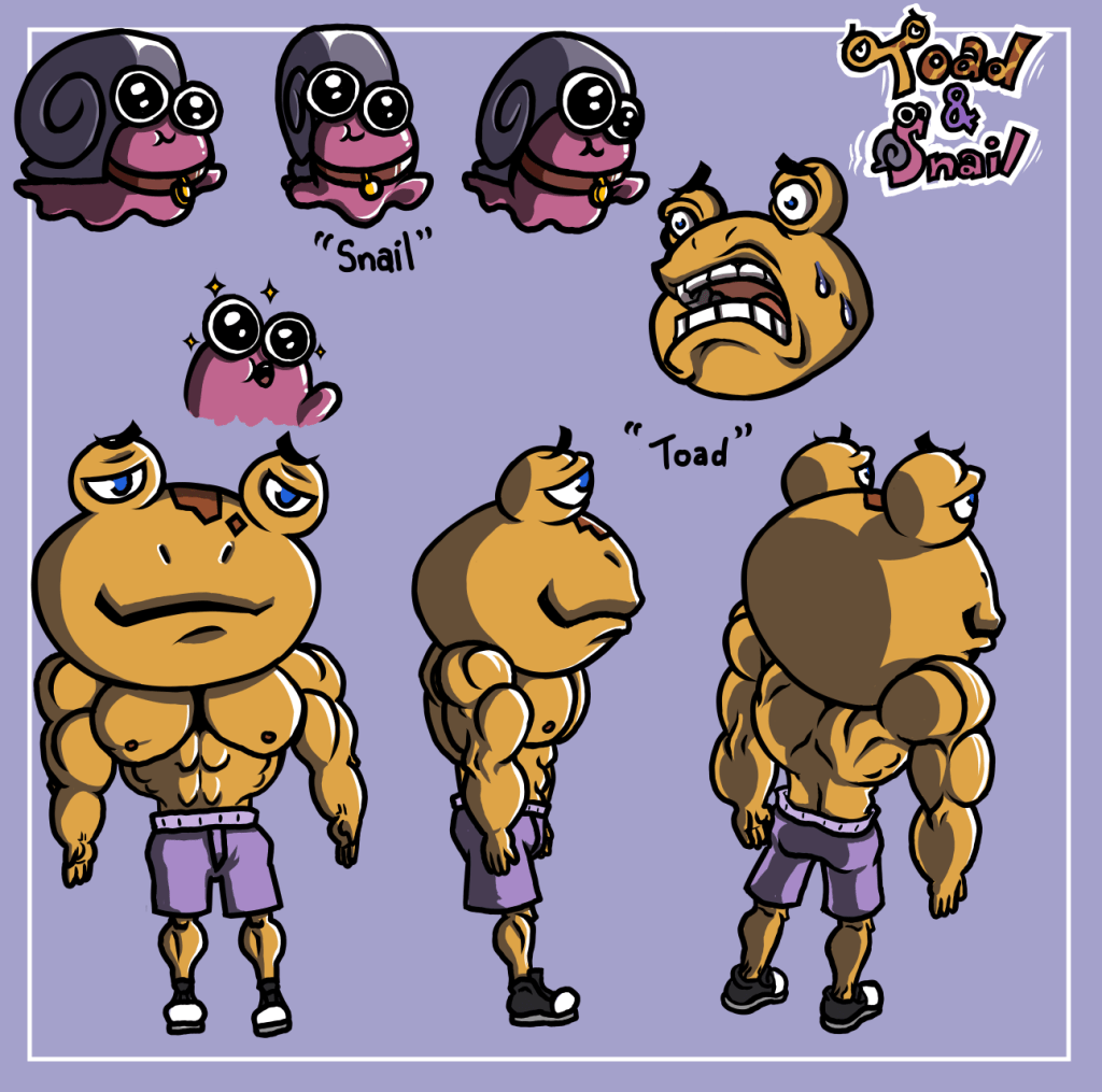 Character Design Toad & Snail Professor Musclehead Model Sheet Action Shot Character Layout Death Play